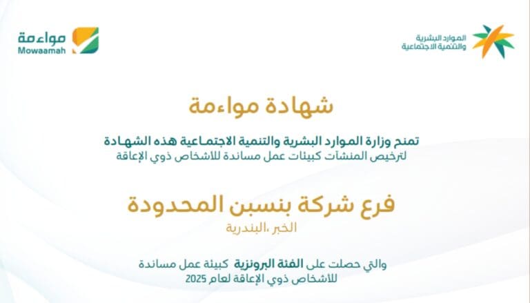 Penspen Awarded Mowaamah Certificate for Commitment to Inclusive and Accessible Work Environments in Saudi Arabia